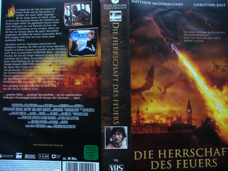 Nur eine kleine gruppe menschen hat sich auf einer burg zurückgezogen. Heute, am 5.8.2021, läuft die herrschaft des feuers im tv. Hochentwickelte drachen bilden die dominante spezies auf der erde. In nur wenigen jahren hat die brut der kreatur nahezu die ganze menschheit ausgerottet. Juli 2002 im rahmen des